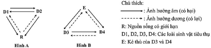 Hình A và hình B dưới đây mô tả về ảnh hưởng qua lại giữa các