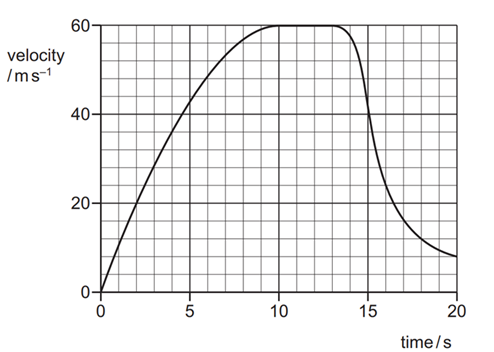 Biểu đồ cho thấy vận tốc thẳng đứng của một người nhảy dù trong 20 giây đầu tiên của cú nhảy. Cô ấy rơi khoảng bao xa trước khi mở dù?