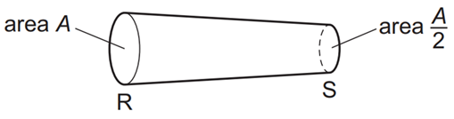 Một đoạn dây RS có tiết diện tròn. Tại đầu R của dây, diện tích tiết diện là A. Tại đầu S của dây, diện tích tiết diện là \(\dfrac{A}{2}\).