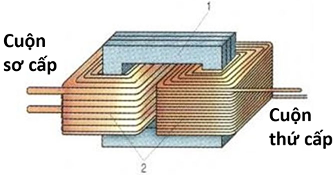 Dưới đây là hình ảnh mô tả một máy biến áp. Số vòng dây của cuộn sơ cấp là 500 vòng,