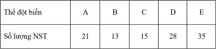 Một loài thực vật có 7 nhóm gene liên kết. Khi khảo sát một quần thể của loài này người ta thấy có 5 thể đột biến (kí hiệu A, B, C, D, E) có số lượng NST thể như sau: