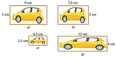 Tìm tỉ lệ tương ứng của chiều rộng và chiều dài giữa các hình với hình a