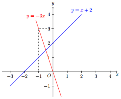 Cho đường thẳng \(\left( d \right):y = - 3x\) và đường thẳng \(\left( {d'} \right):y = x + 2.\)