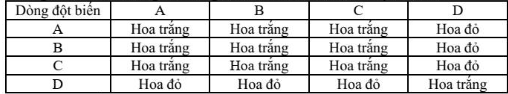 Ở một loài thực vật, tính trạng màu hoa gồm có 1 dòng hoa đỏ