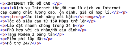 Trình bày đoạn văn bản sau bằng mã HTML: