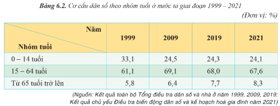 Dựa vào đặc điểm cơ cấu dân số theo nhóm tuổi của nước ta.