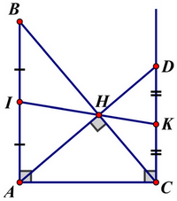 b) Gọi I, K lần lượt là trung điểm của AB và CD. Chứng minh: I, H, K thẳng hàng.