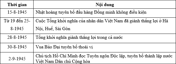 | a) Bảng thông tin trên thể hiện các sự kiện của Cách mạng tháng Tám năm 1945 ở Việt Nam. |