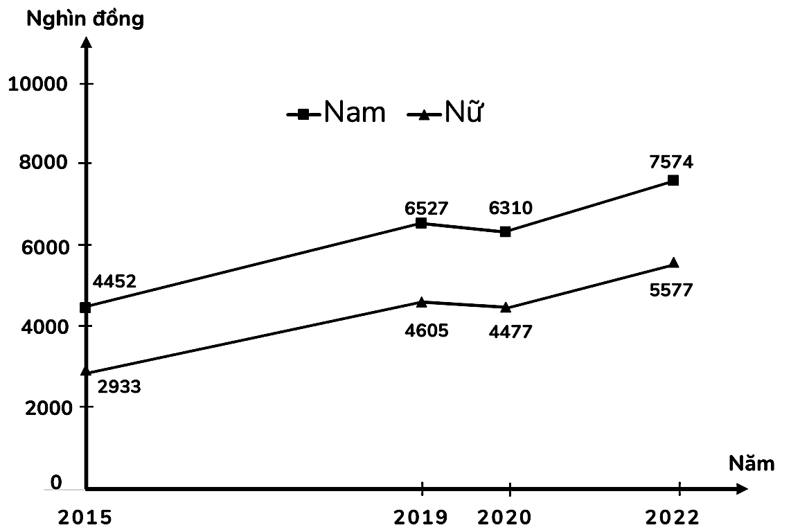 Cho biểu đồ sau: Thu nhập bình quân một lao động đang làm việc phân theo giới tính của nước