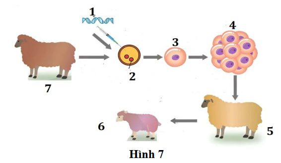 Hình 7 mô tả quy trình tạo động vật biến đổi gene, hãy cho biết con cừu