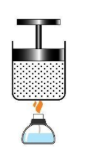 Xét khối khí như trong hình vẽ. Dùng tay ấn mạnh và nhanh pittông, đồng thời nung nóng khối khí bằng ngọn lửa đèn cồn. Chọn đáp án không đúng.