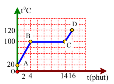 Đồ thị hình bên biểu diễn sự thay đổi nhiệt độ của một lượng nước theo thời gian.
