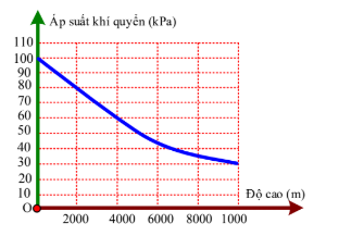 d) Nhìn vào đồ thị ta thấy áp suất khí quyển giảm tuyến tính theo độ cao, tại độ cao 3000 m so với mực nước biển thì áp suất khí quyển giảm còn 70 kPa. ![]() |