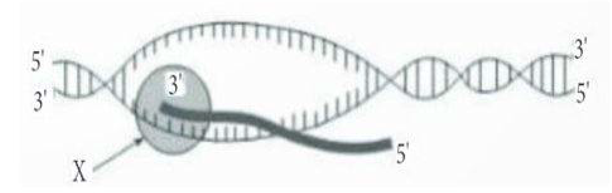Hình vẽ dưới đây mô tả một cơ chế di truyền cấp độ phân tử đang diễn ra. Cấu trúc X trên hình vẽ là