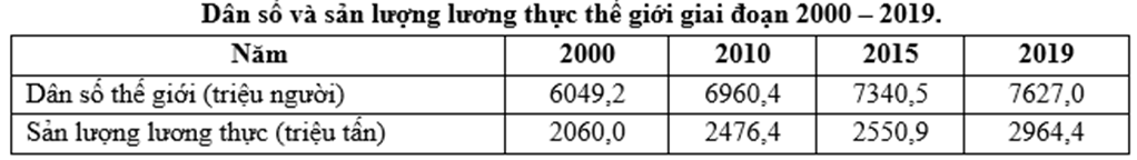 | a) Giai đoạn 2000 - 2019 tốc độ tăng của sản lượng lương thực nhanh hơn tốc độ tăng của dân số. | ||