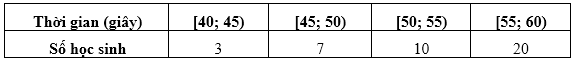 Giáo viên ghi lại thời gian bơi cự ly 50 mét của học sinh lớp 9A cho kết quả trong bảng: