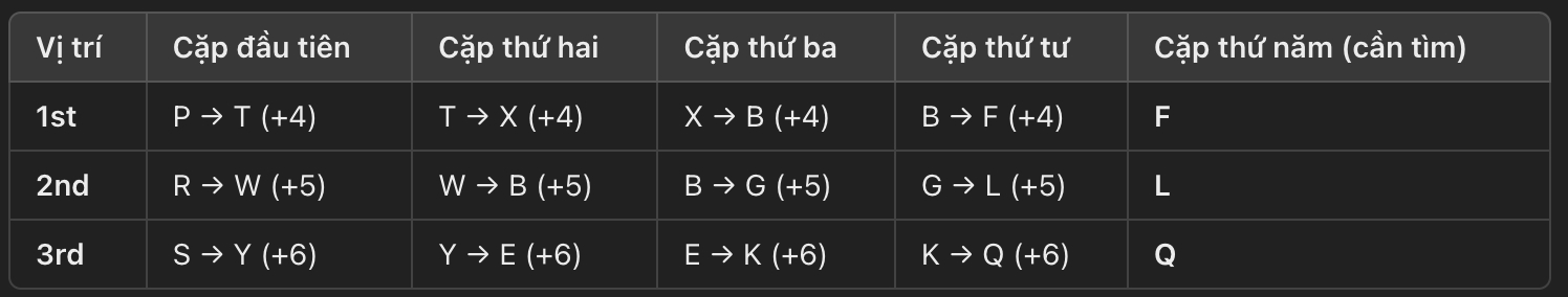 A serie is given with one term missing. Select the correct alternative from the given ones to complete the series: PRS, TWY, XBE, BGK, _____?