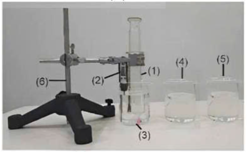 Trong thí nghiệm minh họa định luật Charles về quá trình đẳng áp của lượng khí không đổi được bố trí như hình bên, thiết bị số (2) là: