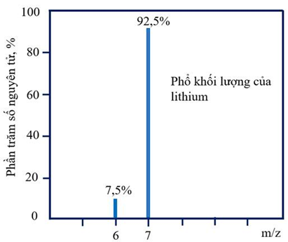 Một mẫu lithium có phổ khối lượng như hình vẽ. Xác định nguyên tử khối