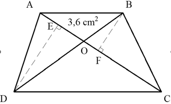 Biết AB = \(\dfrac{3}{4}\) CD, \({S_{AOB}}\) = 3,6 cm2. Tính diện tích hình thang