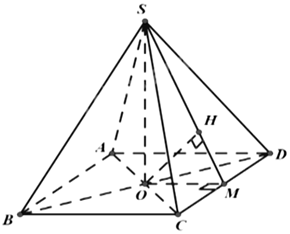 Cho hình chóp tứ giác đều S.ABCD, có cạnh đáy bằng 2 , cạnh bên