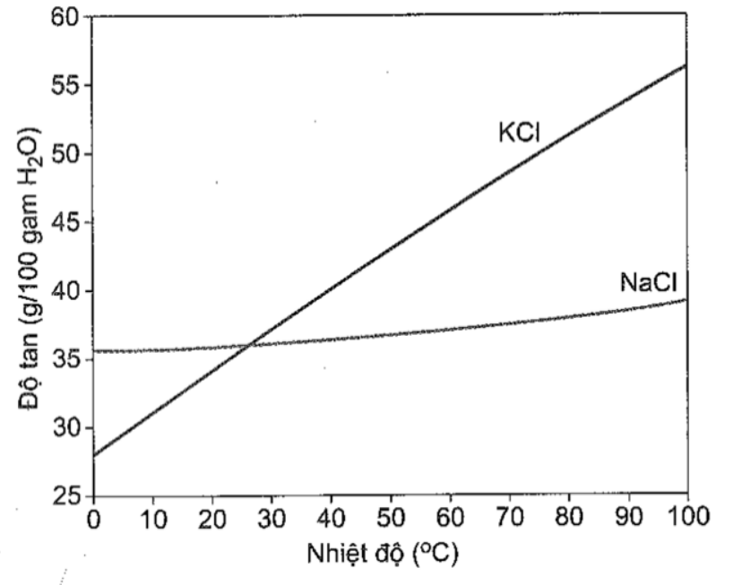 Quặng sylvinite là một khoáng chất phổ biến có thành phần chính là NaCl.KCl. Sự phụ thuộc của độ tan các muối vào nhiệt độ được biểu diễn ở đồ thị sau: