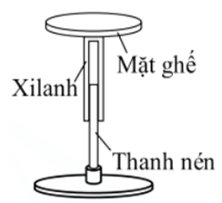 Hình bên là mô hình của một chiếc ghế xoay được nâng hạ bằng khí thông qua chuyển động lên xuống của xilanh nối với mặt ghế, thanh nén khí cố định trên đế bịt kín một lượng khí lí tưởng trong xilanh. Bỏ qua ma sát giữa thanh nén và xilanh. Tổng khối lượng của mặt ghế và xilanh là 5kg, tiết diện của thanh nén là 25cm2. Một học sinh nặng 25kg ngồi lên ghế (hai chân để lơ lửng không chạm sàn) thì ghế hạ xuống 12cm khi ổn định. Coi nhiệt độ của khí trong xilanh không đổi, áp suất khí quyển là 105 Pa và g = 10 m/s2.