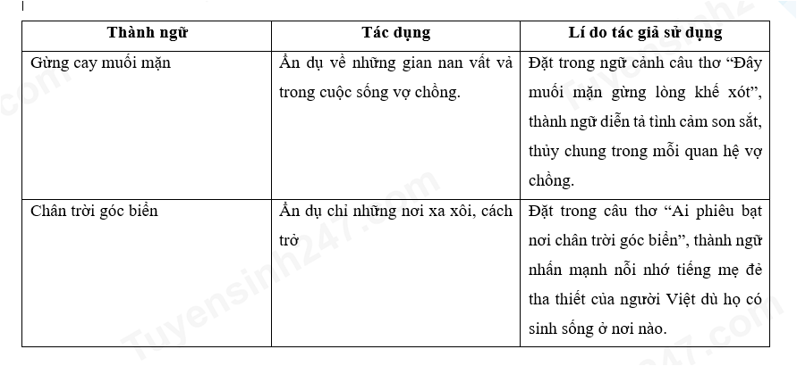 - Nêu lí do tác giả sử dụng các thành ngữ trong bài thơ.