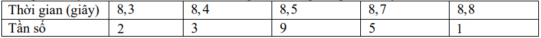 Thời gian chạy 50 m của 20 học sinh được ghi laai trong bảng dưới đây: