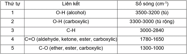 Số sóng hấp thụ đặc trưng trên phổ hồng ngoại của một số liên kết như sau: