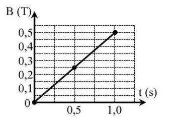 Sử dụng các thông tin sau cho câu 2 và câu 3: Một vòng dây kín có diện tích \(50\,\,d{m^2}\) đặt trong từ trường đều sao cho vecto cảm ứng từ song song và cùng chiều với vecto đơn vị pháp tuyến của mặt phẳng vòng dây. Độ lớn cảm ứng từ biến thiên theo thời gian như đồ thị hình bên.