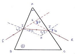 khúc xạ hai lần ở hai mặt bên và cho tia ló ra khỏi lăng kính. Hãy vẽ đường truyền của tia sáng qua