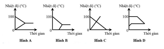 Trộn m (g) nước đá ở \({0^0}C\) với m (g) nước sôi ở \({100^0}C\). Hình nào