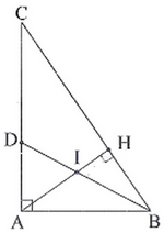 Cho tam giác \(ABC\) vuông tại \(A,\,\,AB = 6cm,\,\,AC = 8cm\), đường cao \(AH\), phân giác \(BD\) cắt nhau tại \(I\).