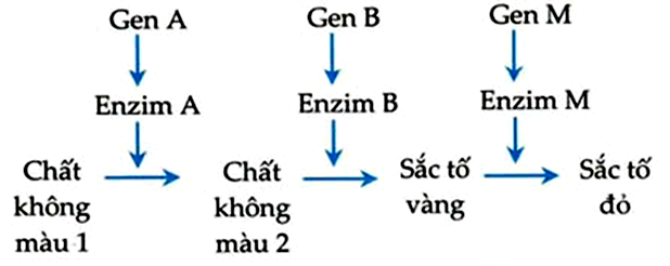 Ở một loài hoa, xét ba cặp gene phân li độc lập, các gene này quy định các enzyme khác nhau cùng tham gia vào một chuỗi phản ứng hoá sinh để tạo nên sắc tố ở cánh hoa theo sơ đồ sau: