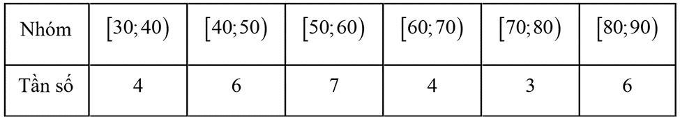 Sau khi thống kê số lượt truy cập Email của 30 người trong một tuần, người ta thu được bảng tần số ghép nhóm như sau: