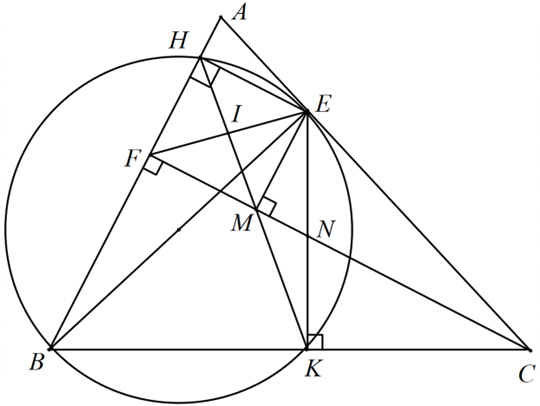 Cho \(\Delta ABC\) có \(3\) góc nhọn và đường cao \(BE\). Gọi \(H,K\) lần lượt là chân đường vuông góc kẻ từ điểm \(E\) đến \(AB,AC.\)