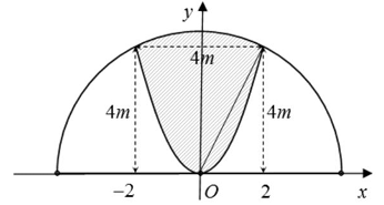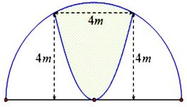 Một khuôn viên dạng nửa hình tròn, trên đó người thiết kế phần để trồng hoa có dạng của một cánh hoa hình parabol có đỉnh trùng với tâm và có trục đối xứng vuông góc với đường kinh của nửa hình tròn, hai đầu mút của cánh hoa nằm trên nửa đường tròn (phần tô màu) và cách nhau một khoảng bằng 4 m . Phẩn còn lại của khuôn viên (phần không tô màu) dành để trồng cỏ Nhật Bản. Biết các kích thước cho như hình vẽ, chi phí để trồng hoa và cỏ Nhật Bản tương ưng là 150000 đồng \(/{{\rm{m}}^2}\) và 100000 đồng \(/{{\rm{m}}^2}\). Hỏi cần bao nhiêu tiền để trổng hoa và trồng cỏ Nhật Bản trong khuôn viên (làm tròn đến hàng phần trăm, đơn vị triệu đồng) bằng