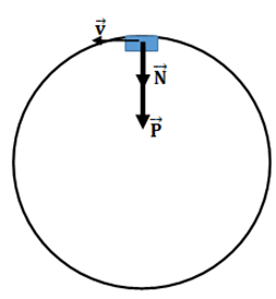 Vòng xiếc là một vành tròn bán kính R = 8m, nằm trong mặt phẳng thẳng đứng. Một người đi xe đạp trên vòng xiếc này, khối lượng cả xe và người là 80kg. Lấy\(g = 9,8m/{s^2}\). Tính lực ép của xe lên vòng xiếc tại điểm cao nhất với vận tốc tại điểm này là v = 10m/s.