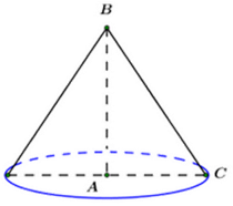 Hình nón sẽ có bán kính đáy là AC và đường sinh BC và có công thức diện tích xung quanh \({S_{xq}} = \pi rl\).