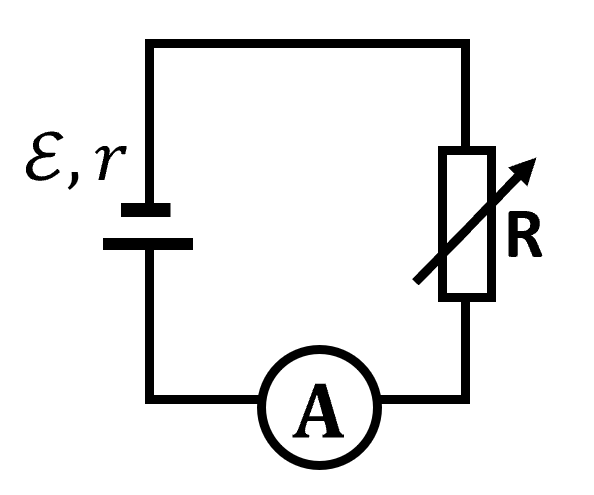 Cho mạch điện như hình vẽ. Bỏ qua điện trở của dây nối và ampe kế. Cho suất điện động và điện trở trong của nguồn lần lượt là \(\xi = 3V\) và \(r = 1\Omega \). Trong đó R là một biến trở.