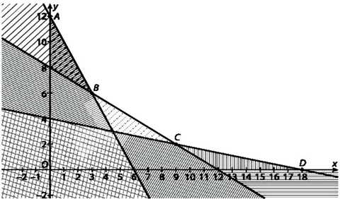 Gọi \(x\) và \(y\) tương ứng là số bao loại \(X\) và loại \(Y\). Từ giả thiết lập hệ bất phương trình thỏa mãn và biểu diễn miền nghiệm trên mặt phẳng tọa độ. Khi đó GTNN đạt tại các đỉnh của đa giác miền nghiệm.