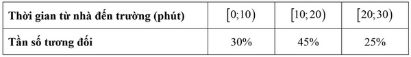 1) Sau khi điều tra về thời gian đi từ nhà đến trường của học sinh lớp 9A có 40 học sinh ta có bảng tần số tương đối ghép nhóm sau: