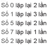 Viết chương trình cho phép người dùng nhập từ bàn phim một dãy số tự nhiên, hãy đếm với mỗi giá trị của dây có bao nhiêu số lặp lại. Ví dụ nếu dãy ban đầu là: