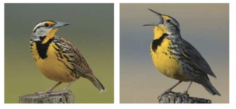 Chim sơn ca đồng cỏ Đông (Sturnella magna, ảnh bên trái) và chim sơn ca đồng cỏ Tây (Sturnella neglecta, ảnh bên phải) có màu sắc lông và cơ thể tương tự nhau. Tuy nhiên, chúng là những loài sinh học khác biệt bởi giọng hát. Đâu là cơ chế hình thành hai loài chim này.