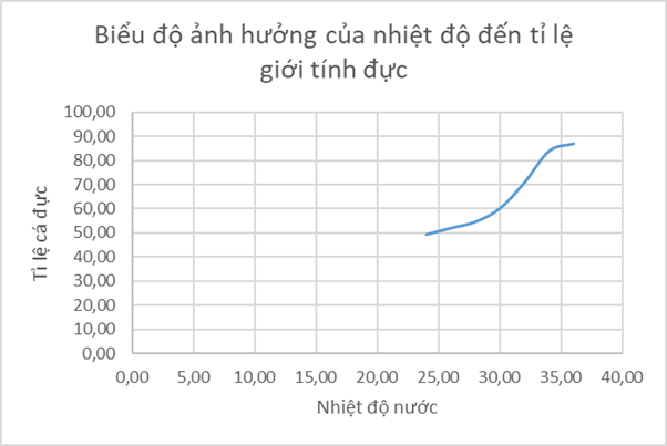 Quan sát biểu đồ và thực hiện các phép tính. Có sự tăng lên của tỉ lệ cá đực trong điều kiện nhiệt độ môi trường tăn.