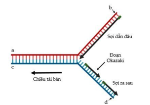 Hình bên mô tả cơ chế nhân đôi DNA, cách chú thích các vị trí a, b, c, d nào dưới đây là đúng?