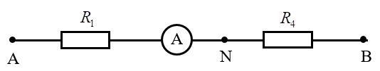 Cho đoạn mạch điện như hình vẽ. Hiệu điện thế \({U_{AB}}\) giữa hai đầu đoạn mạch