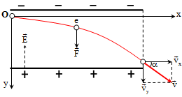 Một electron chuyển động theo phương ngang, đi vào trong khoảng không gian giữa hai bản