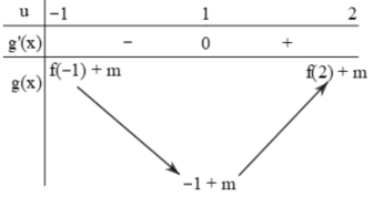 Đặt \(u = 2{x^3} + x - 1 \Rightarrow u' = 6{x^2} + 1 > 0\) với \(\forall x\). Khi đó bài toán trở thành \(g\left( x \right) = f\left( u \right) + m\) với \(u \in \left[ { - 1,2} \right]\)
